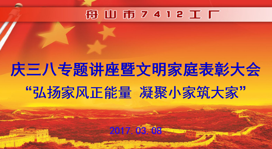2017年3月8日,我廠全體女員工歡聚一堂,舉行慶三八專題講座暨文明家庭表彰大會,共同慶祝第107個三八國際...